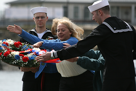 This year's wreath layers are family member of Julius Francis Marullo, Jr., QM1(SS), USS Thresher (SSN 593)